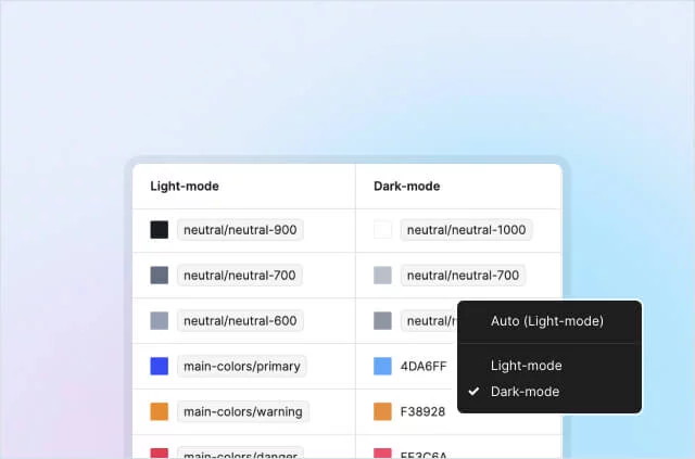 Change color mode of any component with single click. Thanks to Figma's variables feature. Every component is well crafted with Auto Layout, and Figma's variable features